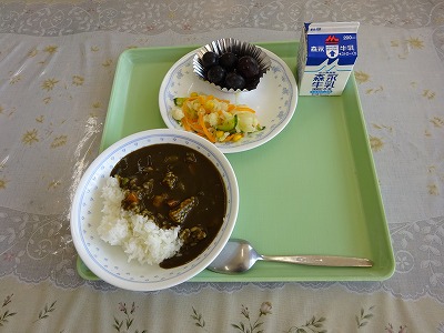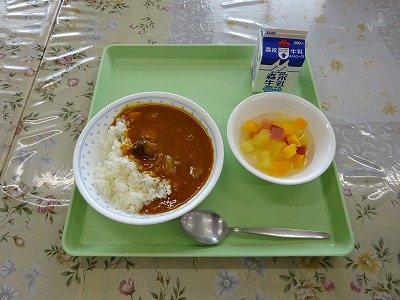 今年最後の冷やし麺でした。どのクラスもよく食べてくれました。手作りピーチパイも好評でした。次は何のパイにしようかな…。楽しみな悩みができました。 ・ごはん ・牛乳 ・チンジャオロウス ・コーンシュウマイ チンジャオロウスの「チンジャオ」は、ピーマン、「ロウス」は細切りにした豚肉という意味があります。今日は小坂で育ったピーマンと桃豚を使用しました。 ・夏野菜カレー ・牛乳 ・ぷるぷるフルーツ コメント