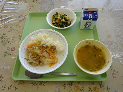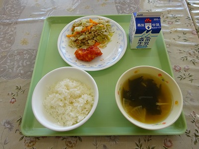 ・高野豆腐のみそ汁 コメント 給食室に「ブラストチラー」という加熱した食べ物を冷却する機械が新しく入りました。今までの冷却機より優れているため、びっくりするくらい冷たくなりました。そのおかげでしょうか?焼肉丼に負けないくらいサラダの残量も少なかったです。 ・ごはん ・牛乳 ・小松菜と厚揚げの生姜炒め