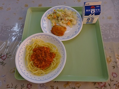 ・花野菜のサラダ コメント なすときのこを使って秋らしいパスタにしました。なすときのこは苦手だという人も多いですが、ミートソースだと食べられたようでした。 ・チキンカレー ・ジョア(ブルーベリー) ・こんにゃくサラダ