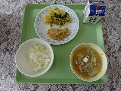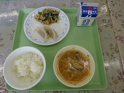 今週は給食習慣で、テーマは「減塩」です。昆布とかつおでだしをとり、たら、キムチのうま味がたっぷりのスープになりました。小坂で育ったにんじんと特大サイズの大根が入りました。ちょっぴり辛くて、体が温まりました。 ・ミートソーススパゲティ ・牛乳 ・ねぎしおレモンチキン焼き コメント 今週は給食習慣で、テーマは「減塩」です。とり肉はレモンの酸味がアクセントになり、ねぎの香りとうま味で少ない塩でもおいしく仕上がりました。スープには、小坂町で育ったほうれん草を使いました。 ・ごはん ・牛乳 ・しおにくじゃが コメント 今週は給食習慣で、テーマは「減塩」です。香草とにんにくで香りづけし、粉チーズでコクをプラスしたパン粉をのせて、サバを焼きました。使う調味料を工夫することで、塩分を控えめにしました。 ・カレーそぼろ丼 ・牛乳 ・キャベツのみそ汁 コメント 今日のカレーそぼろ丼には、砕いた豆腐も入りました。ひき肉のような見た目になったので、気づかずに食べた人がほとんどだったと思います。ひき肉の量が少なくても、満足感のあるカレーそぼろ丼になりました。 ・ごはん ・牛乳 ・米粉ぎょうざ ・マーボー白菜スープ コメント 1月26日~30日は、学校給食習慣です。小坂小中学校では、今週「減塩」をテーマにした給食を提供します。今日は、白菜とマーボー味のスープにしました。しょうがとにんにくを効かせて、ごま油で香りをつけて、減塩でもおいしく食べられるよう仕上げました。 ・ごはん ・牛乳 ・スタミナなっとう ・豚汁 コメント スタミナ納豆は、ひきわり納豆とひき肉と、ネギを炒めて作る料理です。鳥取県の学校給食から生まれました。小坂小中でも人気メニューの一つです。今日も別々に食べる人、ごはんにのせて食べる人と、自分のスキな食べ方でモリモリ食べてくれました。 ・五目うどん ・牛乳 ・和風コールスローサラダ ・ジョア(プレーン) コメント しいたけは、日本だけでなく、中国や韓国、東南アジアで食べられています。昔は貴重で、高価でしたが、栽培できるようになり、手に入りやすくなりました。今日の五目うどんには、秋田県産の干ししいたけを使いました。しいたけのうま味と香りでおいしいうどんになりました。 ・ごはん ・牛乳 ・あじフライ ・もずくのみそ汁 コメント もやしは野菜の仲間ですが、畑ではなく工場で育ちます。工場で育てるのは、光をさえぎり、暗い場所で育てることで、白くて長いもやしができるからです。ひょろひょろして、弱々しいイメージですが、食物繊維が多く、ビタミンも入っています。味にくせがなく、いろいろな料理に使われます。 ・ぶたすき丼 ・牛乳 ・ほうれん草のツナ和え ・ジョア(プレーン) コメント 今日の給食に使用したにんじん、はくさい、ほうれん草は、地元の農家の方々に届けていただきました。スーパーなどに売っているものと違い、形がそろっていない時もあります。そんな時、調理員さんは、洗うのも切るのも大変です。でも新鮮で、みずみずしくおいしい野菜を食べてもらいたいと思い給食を作っています。 ・ごはん ・牛乳 ・とうふ入り卵焼き ・わかめのみそ汁 コメント キャベツは、世界でもっとも古い野菜の一つで、ヨーロッパで生まれたケールが祖先だったそうです。キャベツにはたくさんの栄養が入っています、特にビタミンUという栄養は、キズついた胃腸をなおしてくれる働きがあります。今日は小坂産のキャベツが届きました。 ・ごはん ・牛乳 ・たらの味噌ネーズ焼き ・なめこ汁 コメント たらは、日本のまわりの海でとれる、冬が旬の魚です。秋田県にかほ市では毎年2月に、大きなたらを担いで山道を登り、豊漁と安全を願って神社に奉納するお祭りが行われます。今がおいしいたらを、みそとねぎ、マヨネーズのソースをかけて焼きました。 ・ごはん ・牛乳 ・ヤンニョムチキン ・大根とわかめのスープ コメント ひじきを食べるのは日本人だけと言われています。乾燥させて、長く保存することができるのは、昔からの知恵です。今日はたくさんの野菜と、大豆製品を一緒に炒めました。どのクラスもしっかり食べてくれました。 ・ひきにくカレー ・牛乳 ・イタリアンサラダ コメント 今日から3学期が始まり、給食も再開しました。今日は、手作りのミルクプリンでした。1つ1つプリン液をカップに流し入れて、冷やし固めて、いちごソースをかけて、ていねいに仕上げました。調理員に感謝です。