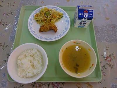 桃豚のかりん揚げは人気メニューの一つです。どのクラスも食缶が空っぽで戻ってきました。地域の食材である桃豚が大人気メニューなのは誇らしいことですね。 ・大豆たっぷりミートソース ・牛乳 ・とり肉のコーンマヨネーズ焼き