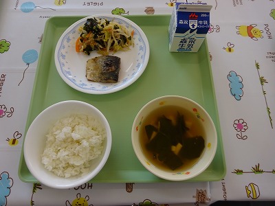 ・ごはん ・牛乳 ・さばの味噌煮 コメント サバの味噌煮は、サバとコクのある甘いみそがよく合い骨まで柔らかく食べやすかったです。スキ、キライがはっきり分かれる献立でしたが、苦手な子も、しっかり食べてくれました。