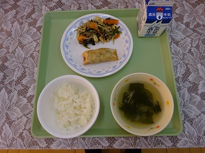 ・ごはん ・牛乳 ・棒ぎょうざ コメント わかめを食べる国は、日本、韓国、台湾だといわれています。そんなわかめですが、世界中の海に広がり、食べる習慣のない国で被害が出ているそうです。その反面、フランスでは人気上昇中の食物になっているそうです。わかめの旬は今です。旬のわかめを食べて見てはいかがでしょうか。