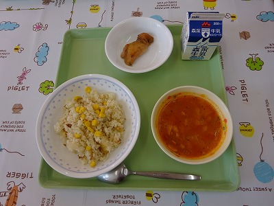 ・コーンとツナのピラフ ・牛乳 ・鶏肉のハーブ焼き