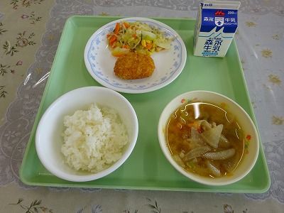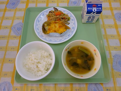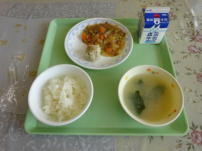 ・のり塩ポテトコロッケ コメント 夏のイメージがある枝豆ですが、七滝ファームさんから、秋においしい枝豆が届きました。夏よりも昼と夜の温度差が大きい、今の枝豆は、香りがよく、粒が大きく、とっても甘くておいしかったです。 ・ごはん ・牛乳 ・麻婆大根