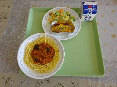 ・花野菜のサラダ コメント なすときのこを使って秋らしいパスタにしました。なすときのこは苦手だという人も多いですが、ミートソースだと食べられたようでした。 ・チキンカレー ・ジョア(ブルーベリー) ・こんにゃくサラダ
