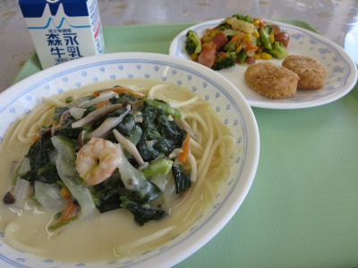 コメント みそラーメンは子どもたちが好きなメニューの1つです。ラーメンの日にはいつも「ラーメン大好きです!」「しょうゆラーメンや塩ラーメンも出してほしいです」という声が聞こえてきます。今日のみそラーメンは太麺を使用しました。麺に弾力があり、食べ応えがありました。。